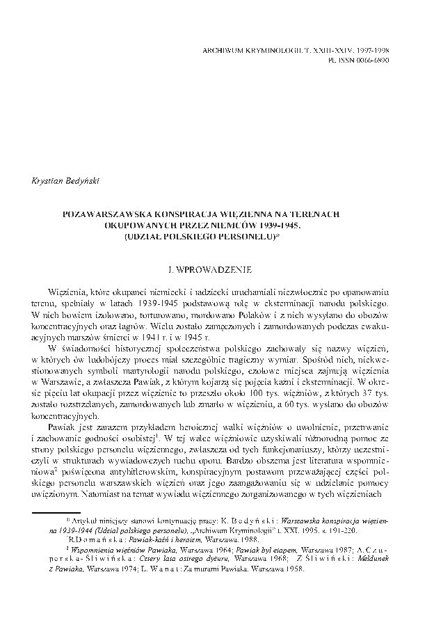 The actual possibility of forming a prison conspiracy in Nazi-occupied territories depended on many factors. This was related to differences in the functioning of prisons systems in different regions. Individual administrative districts in territories included into the Reich differed in this respect from the occupied regions and from the eastern borderland of Poland, Nazi-occupied since 1941.