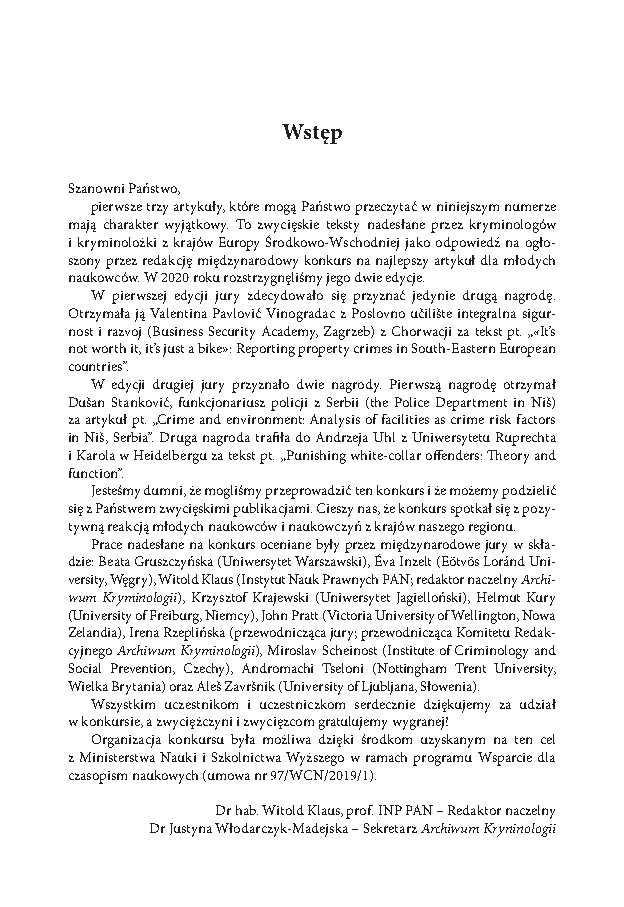 No. XLII/2 (2020) Articles Introduction PDF (Polish) Witold Klaus, Justyna Włodarczyk-Madejska more info Witold Klaus Institute of Law Studies of the Polish Academy of Sciences, Department of Criminology Justyna Włodarczyk-Madejska Institute of Law Studies of the Polish Academy of Sciences, Department of Criminology Published 2023-02-15 Keywordscriminology Copyright (c) 2021 Witold Klaus, Justyna Włodarczyk-Madejska This work is licensed under a Creative Commons Attribution 4.0 International License. How to Cite “Introduction” (2023) Archives of Criminology, (XLII/2), p. 5. Available at: https://czasopisma.inp.pan.pl/index.php/ak/article/view/2139 (Accessed: 17 January 2026). More Citation Formats ACM ACS APA ABNT Chicago Harvard IEEE MLA Turabian Vancouver AMA Download Citation Endnote/Zotero/Mendeley (RIS) BibTeX PDF (Polish)