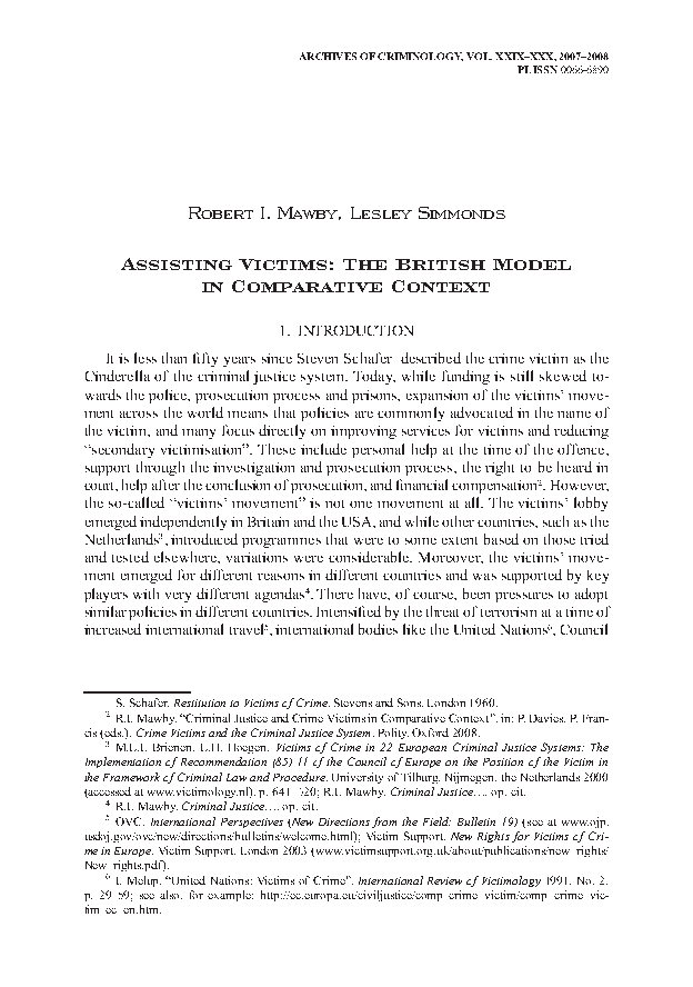 - Mawby R.I., Criminal Justice and Crime Victims in Comparative Context [w:] P. Davies, P. Francis (eds.), Crime Victims and the Criminal Justice System, Polity, Oxford 2008.