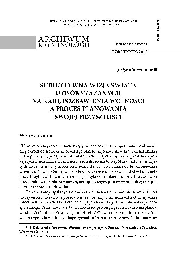 The prison, as a place of detention, has a number of tasks to achieve, one of the crucial ones being to rehabilitate the inmates, i.e. habituate them to life in basic social groups and institutions. The pursuit of this mission makes it necessary to maintain, construct or reconstruct non-existent, broken or dysfunctional social ties, including family ones. The primary goal of the penitentiary rehabilitation process is for the activities that inmates are involved in while serving their sentences to be conducive to taking up appropriate social roles while satisfying their needs in accordance with accepted values, models and social norms. A permanent change of behaviour can only be brought about if preceded by a cognitive change in the inmate’s system of beliefs and mentality. According to the cognitive theory of human behaviour, man’s actions are conditioned by information, while the structure of the information people have internalised determines what aims they pursue and what they avoid. Information comes from two primary sources – from the individual’s environment and from experience. It makes up every person’s subjective worldview and to large extent determines his or her actions. The article presents the findings of research conducted on a group of nine inmates regarding how they planned their future in light of their subjective worldview. The research was conducted in the form of individual, unlimited (time) interviews with the prisoners. The overarching aim was to find out what factors shaped the inmates’ subjective worldview and how the latter translated into what they were planning to with their future after leaving prison. Family and family relationships are one of the key elements that determine how inmates perceive the world. It is with family in mind – as the findings indicate – that inmates formulate their future goals. It is worth noting that the inmates’ approach to planning had changed in the course of serving their sentences – they currently see planning as a value and a condition of a successful return into the open. They shift their attention from the past to the future, they no longer concentrate only on their ‘old’ experiences, traumas and hurts, but begin increasingly to focus on the future and the present. They are critical of their former (pre-imprisonment) lifestyle and the decisions made then. They also distance themselves from their former crime partners, who have abandoned them. Hence, basic therapeutic and psycho-educational work with inmates should be based on the principles of cognitive-behavioural psychology. Using their declared willingness to change, we can raise the effectiveness of rehabilitation. Strong unwillingness to take part in therapeutic programs is a widespread problem in rehabilitation work. Hence, diagnosing or analysing individual perceptions of reality, and particularly the factors that underlie their specificity, is a key factor in bringing about change. Making plans requires looking at one’s past and present life from a different perspective. Imprisonment provides such a new perspective which, in spite of the hardships of detention, can also inspire reflection. For this to happen, the staff needs to be engaged in new programmes and methods of working with inmates. Raising one’s professional competence and increasing the number of one-on-one meetings with a psychologist and/or therapist are only some of the possible solutions prison staff can undertake. Another important element in the process of planning is time: the time already spent in prison and the time remaining until the end of the sentence. The least planning, as research indicates, is done by people who have just begun serving their sentence or who still have a lot of time ahead until release. Of course this does not mean that they do not think about their future life upon leaving the penitentiary facility. It is too great an emotional strain for these prisoners, however, they therefore focus on adapting to the new conditions in the best way possible from the viewpoint of potential gains. In the studied group, planning also coincided with a marked tendency to change, which cannot be achieved without the active support of inmates’ families. Hence it is also important to get the family circle involved the rehabilitation process. It is no easy task, yet doable, as shown by numerous programmes implemented in penitentiary facilities (such as ‘Daddy behind the wall’) which particularly today need to be innovative and adapted to the present.