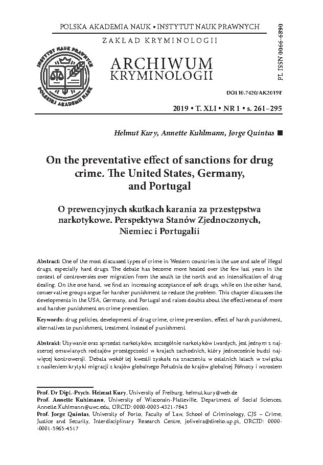 - Kury H., Quintas J., Zur Wirkung von Sanktionen bei Drogenabhängigen. Argumente für eine rationale Drogenpolitik, “Polizei & Wissenschaft” 2010, Iss. 1, pp. 32–56.