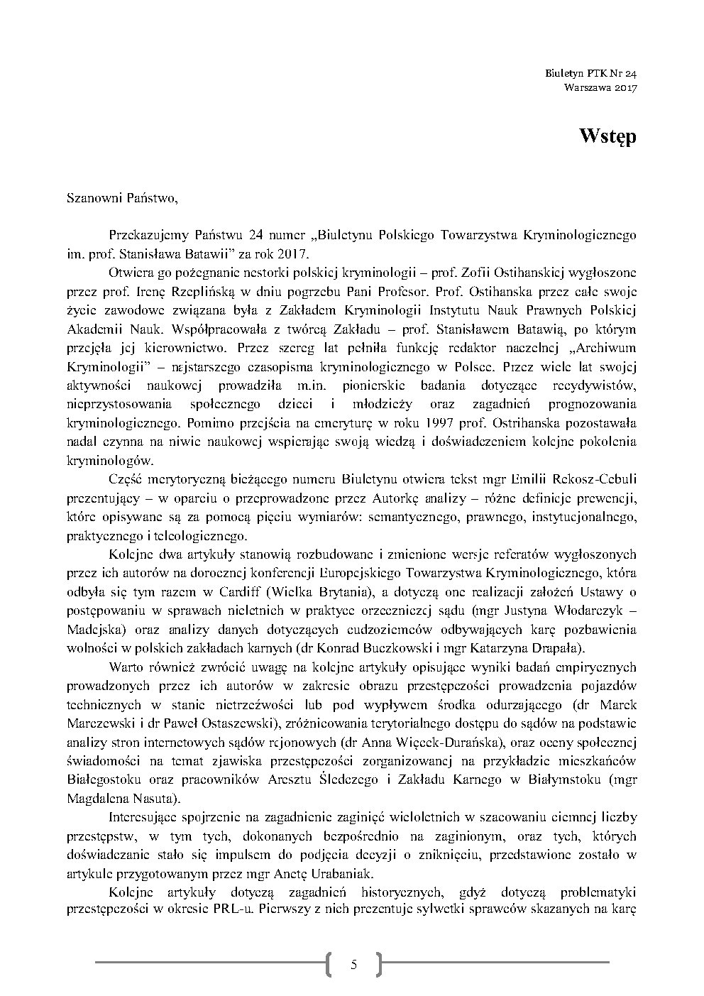 Redakcja Biuletynu Polskiego Towarzystwa Kryminologicznego im. profesora Stanisława Batawii