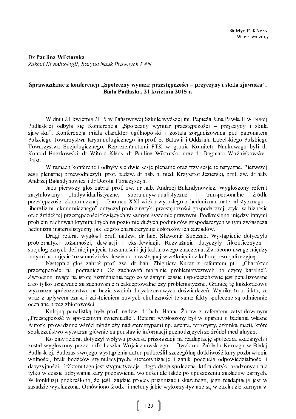 Sprawozdanie z konferencji „Społeczny wymiar przestępczości – przyczyny i skala zjawiska”, Biała Podlaska, 21 kwietnia 2015 r. (2021). Biuletyn Kryminologiczny, 22, 129-130. https://czasopisma.inp.pan.pl/index.php/bk/article/view/2571
