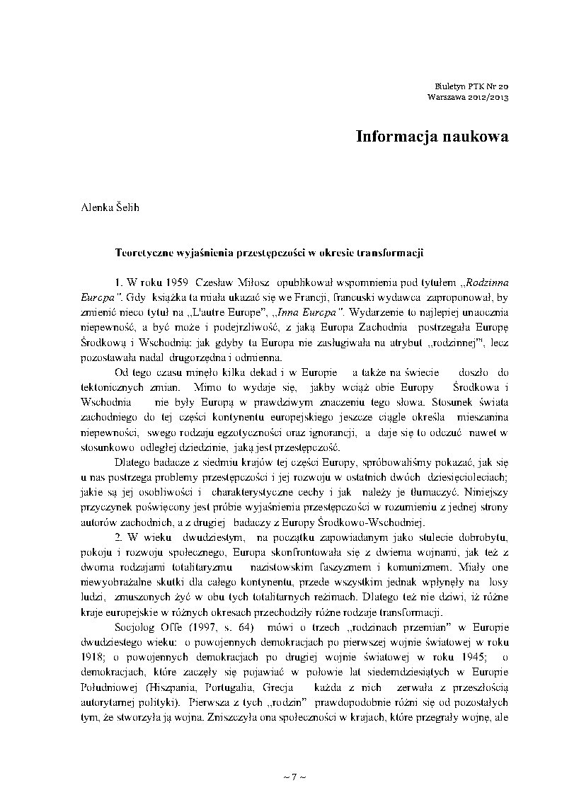 przyczynek poświęcony jest próbie wyjaśnienia przestępczości w rozumieniu z jednej strony autorów zachodnich, a z drugiej badaczy z Europy Środkowo-Wschodniej.