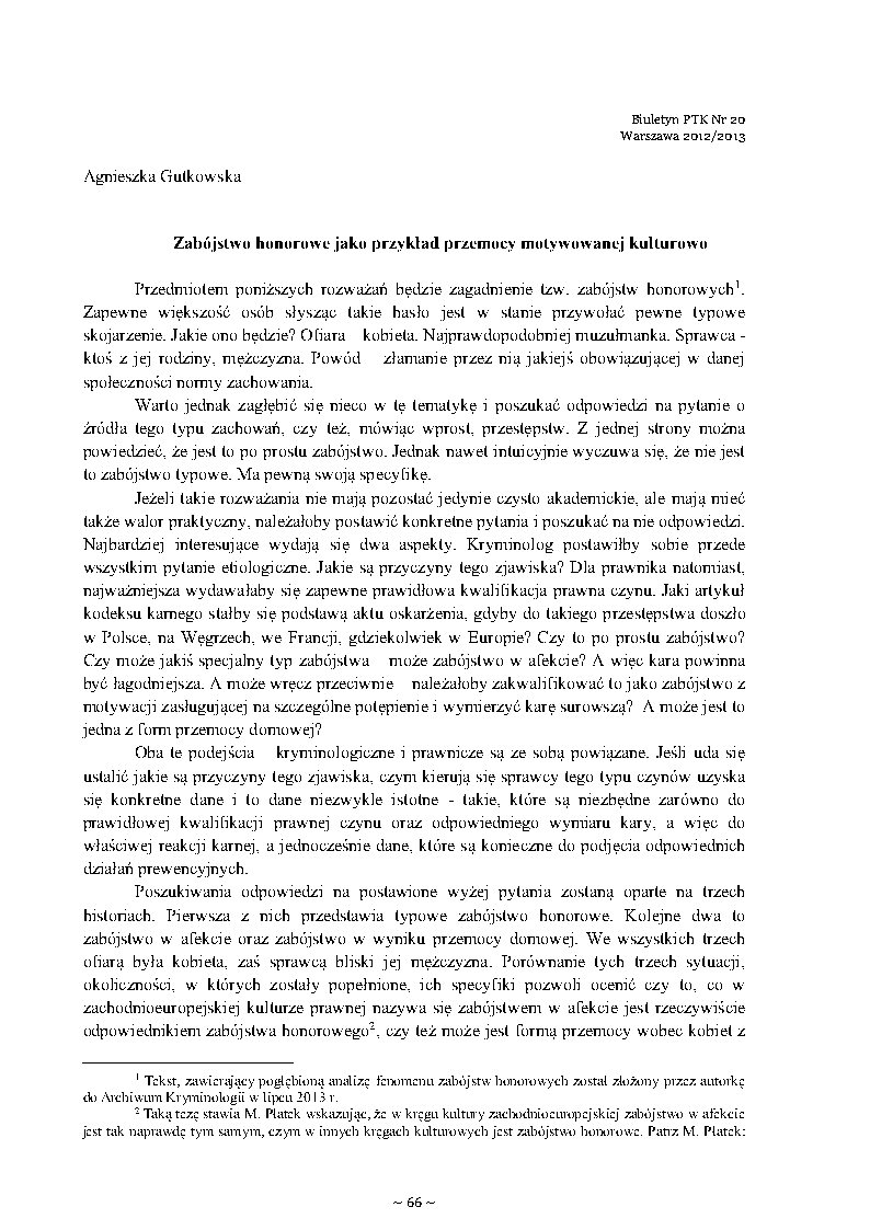 - Płatek M., Zabójstwa na tle honoru. Problem wyznania czy dyskryminacji ze względu na płeć, [w:] R. Wieruszewski, M. Wyrzykowski, L. Kondratiewa–Bryzik (red.), Prawne granice wolności sumienia i wyznania, Warszawa 2012, ss. 287–311.