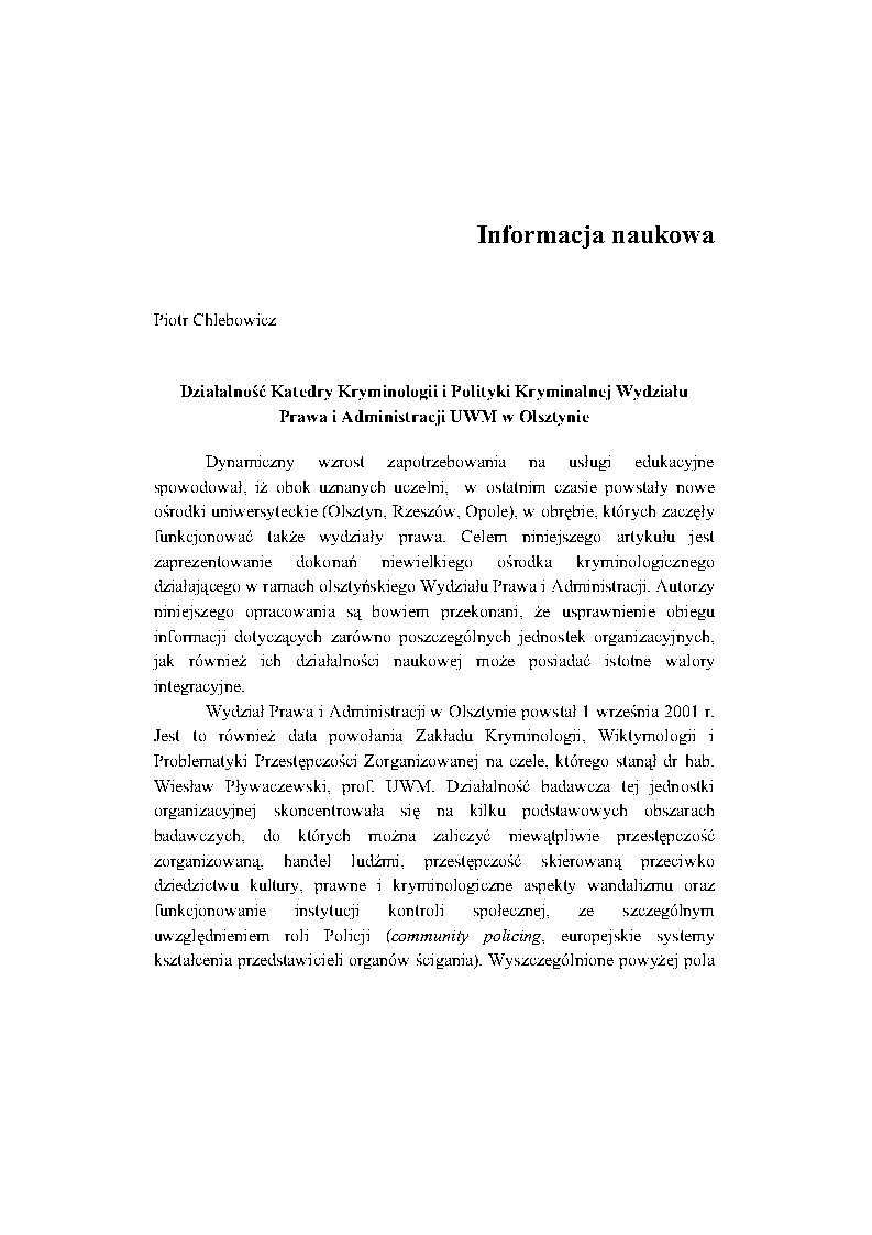 Nr 18 (2009) Artykuły Działalność Katedry Kryminologii i Polityki Kryminalnej Wydziału Prawa i Administracji UWM w Olsztynie PDF Piotr Chlebowicz Opublikowane 17.02.2022 Słowa kluczoweszkolnictwo wyższe,nauczanie prawa,prawo Prawa autorskie (c) 2022 INP PAN Utwór dostępny jest na licencji Creative Commons Uznanie autorstwa 4.0 Międzynarodowe. Jak cytować Działalność Katedry Kryminologii i Polityki Kryminalnej Wydziału Prawa i Administracji UWM w Olsztynie. (2022). Biuletyn Kryminologiczny, 18, 12-15. https://czasopisma.inp.pan.pl/index.php/bk/article/view/3287 Formaty cytowań ACM ACS APA ABNT Chicago (autor-data) Harvard IEEE MLA Turabian Vancouver AMA Pobierz cytowania Endnote/Zotero/Mendeley (RIS) BibTeX Abstrakt - PDF