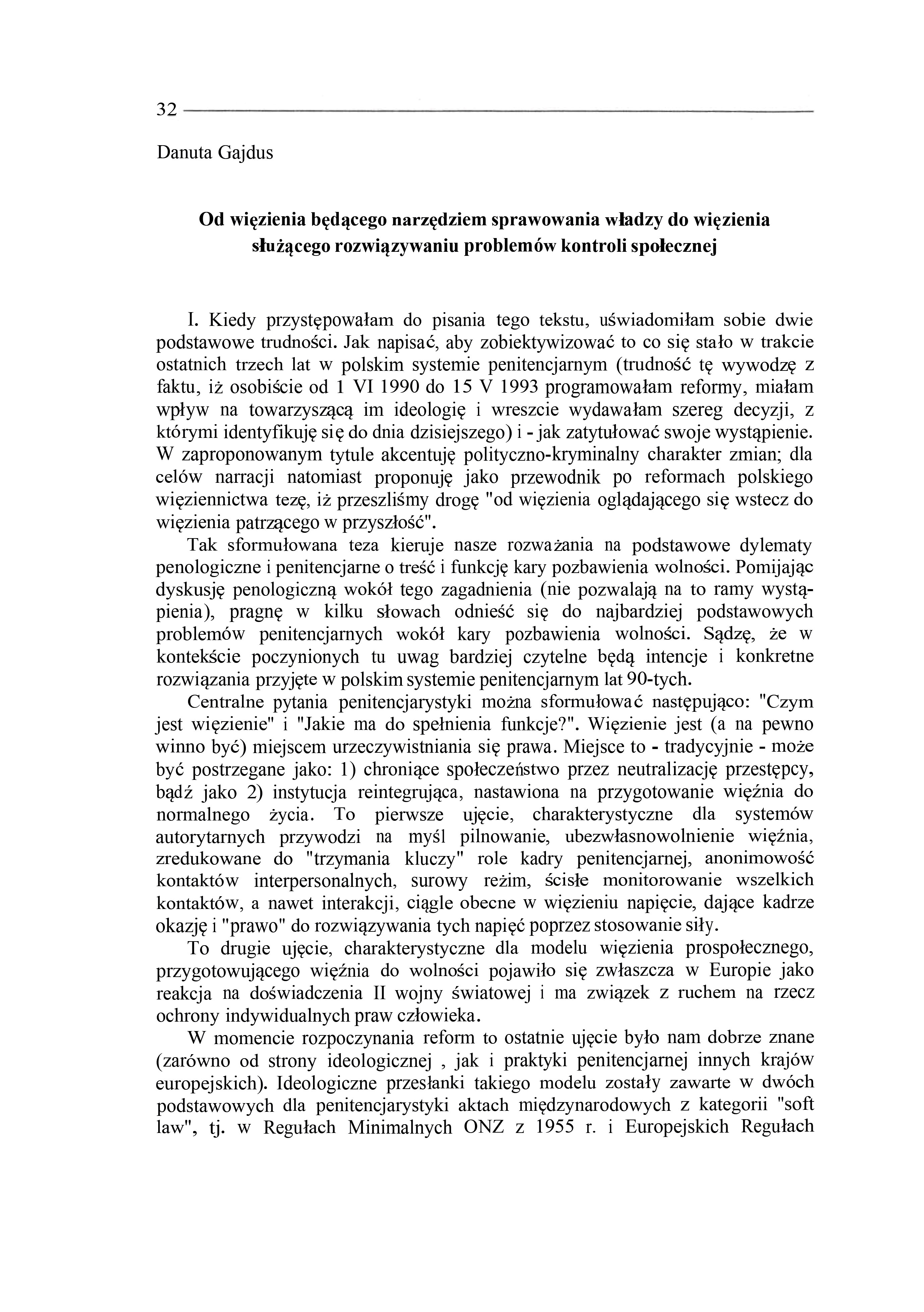 Centralne pytania penitencjarystyki można sformułować następująco: "Czym jest więzienie" i "Jakie ma do spełnienia funkcje?". Więzienie jest (a na pewno winno być) miejscem urzeczywistniania się prawa.