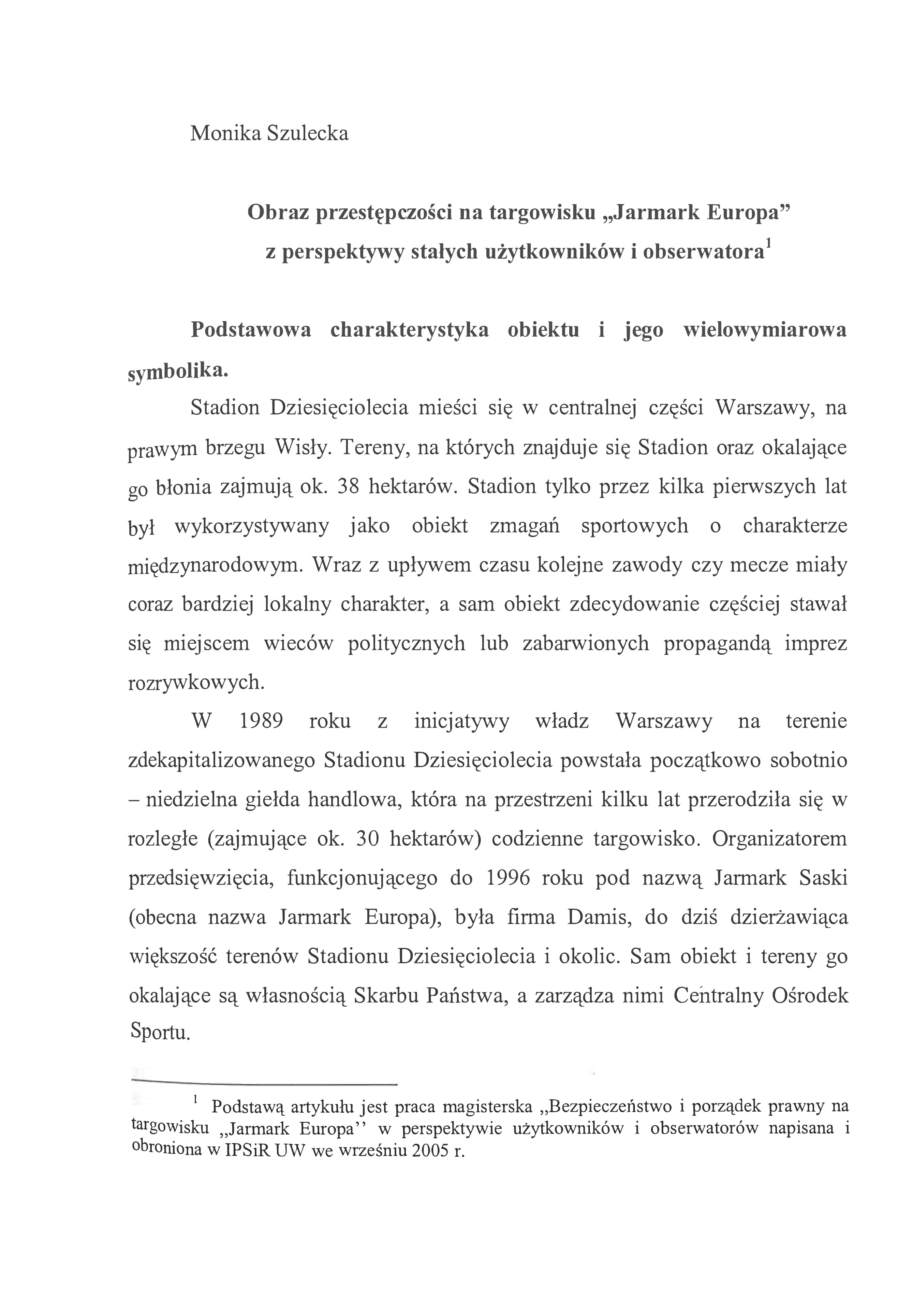 Przestępczość związana ze Stadionem Dziesięciolecia ma swoje źródła zarówno bezpośrednio na targowisku, jak też daleko poza granicami Polski. ,,Winą'' samego obiektu jest tylko jego dogodne położenie i rozległy obszar. Wielce wątpliwe jest więc, czy fizyczne zlikwidowanie targowiska i zapowiadane przeniesienie wyłącznie uczciwych kupców na inne bazary, rozwiąże problem tej przestępczości. Można przypuszczać, że funkcjonowanie bazaru jest ułatwieniem, punktem stycznym dla przestępczych interesów. Widoczne, na przestrzeni kilkunastu lat funkcjonowania targowiska, zmiany form dokonywanych przestępstw pozwalają również sądzić, że fizyczny brak dostępu do przestrzeni zarezerwowanej dziś dla Jarmarku Europa i sąsiednich bazarów nie rozwiąże problemu powszechnej tam przestępczości gospodarczej