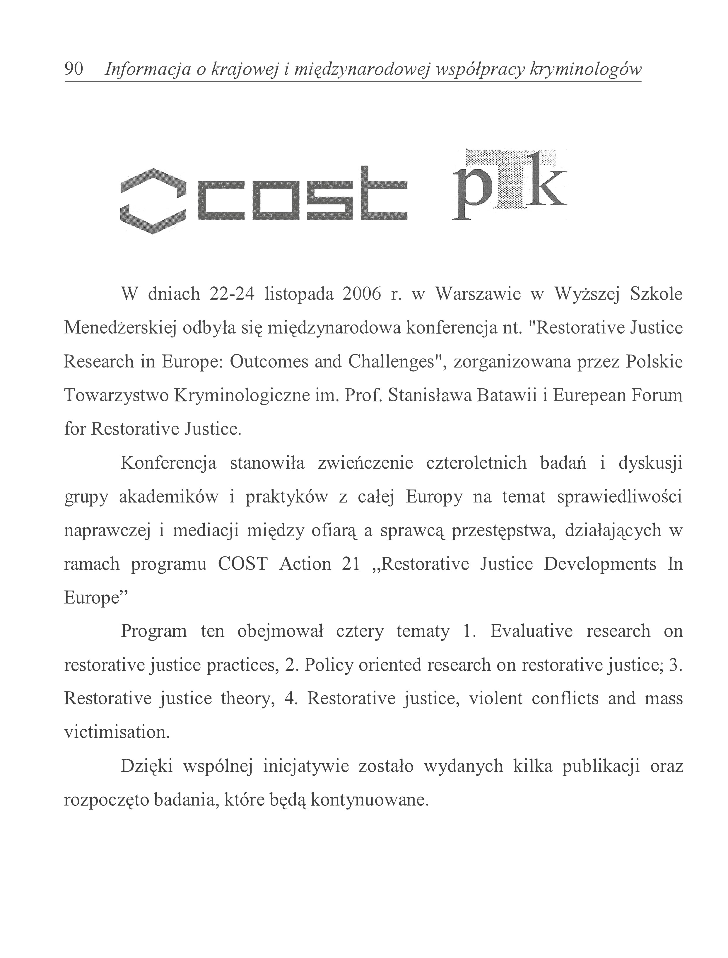 Nr 15 (2006) Varia Program konferencji COST Action A21 "Restorative Justice Research in Europę: Outcomes and Challenges” pdf Redakcja Biuletynu Polskiego Towarzystwa Kryminologicznego Opublikowane 21.04.2006 Prawa autorskie (c) 2022 INP PAN Utwór dostępny jest na licencji Creative Commons Uznanie autorstwa 4.0 Międzynarodowe. Jak cytować Program konferencji COST Action A21 "Restorative Justice Research in Europę: Outcomes and Challenges”. (2006). Biuletyn Kryminologiczny, 15, 90-97. https://czasopisma.inp.pan.pl/index.php/bk/article/view/3416 Formaty cytowań ACM ACS APA ABNT Chicago (autor-data) Harvard IEEE MLA Turabian Vancouver AMA Pobierz cytowania Endnote/Zotero/Mendeley (RIS) BibTeX pdf