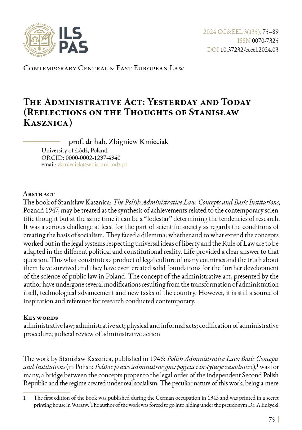 The Administrative Act: Yesterday and Today (Reflections on the Thoughts of Stanisław Kasznica). (2024). Contemporary Central & East European Law, 3(135), 75–89. https://doi.org/10.37232/cceel.2024.03