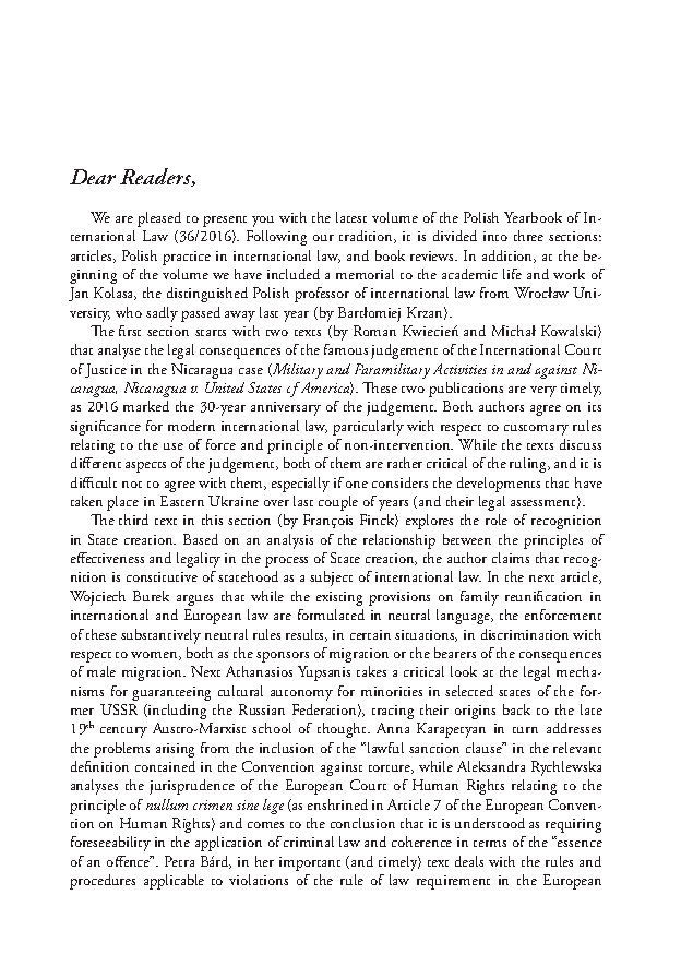 Vol. 36 (2016) Editorial Editorial PDF Karolina Wierczyńska, Łukasz Gruszczyński more info Karolina Wierczyńska Institute of Law Studies of the Polish Academy of Sciences Łukasz Gruszczyński Institute of Law Studies of the Polish Academy of Sciences Published 2016-12-31 Copyright (c) 2021 ILS PAS This work is licensed under a Creative Commons Attribution 4.0 International License. How to Cite Editorial. (2016). Polish Yearbook of International Law, 36, 7-8. https://czasopisma.inp.pan.pl/index.php/pyil/article/view/2523 More Citation Formats ACM ACS APA ABNT Chicago Harvard IEEE MLA Turabian Vancouver AMA Download Citation Endnote/Zotero/Mendeley (RIS) BibTeX PDF
