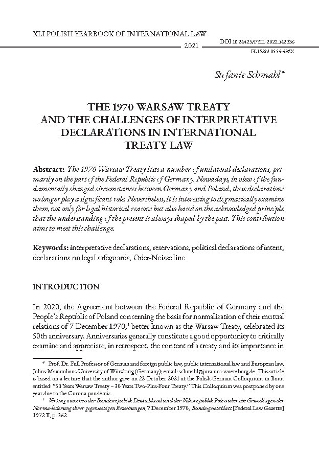 The 1970 Warsaw Treaty and the Challenges of Interpretative Declarations in International Treaty Law. (2023). Polish Yearbook of International Law, 41, 31-43. https://doi.org/10.24425/PYIL.2022.142336
