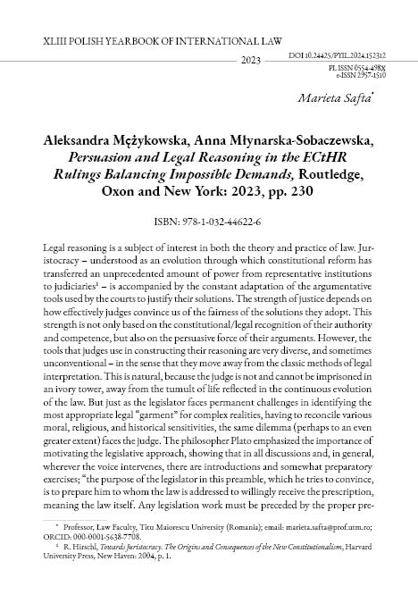 Aleksandra Mężykowska, Anna Młynarska-Sobaczewska, Persuasion and Legal Reasoning in the ECtHR Rulings Balancing Impossible Demands, Routledge, Oxon and New York: 2023, pp. 230. (2024).