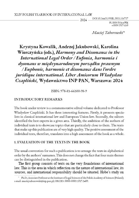 Krystyna Kowalik, Andrzej Jakubowski, Karolina Wierczyńska (eds.), Harmony and Dissonance in the International Legal Order / Eufonia, harmonia i dysonans w międzynarodowym porządku prawnym / Euphonie, harmonie et dissonance dans l’ordre juridique inter. (2025).
