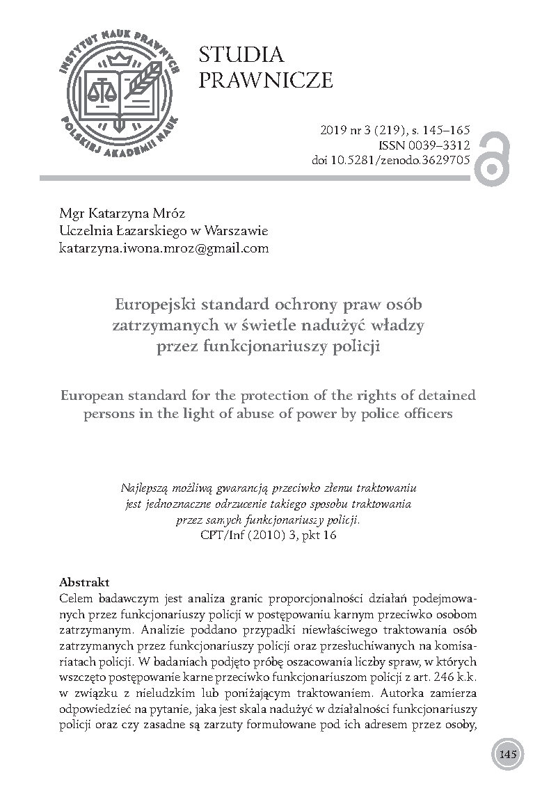 Europejski standard ochrony praw osób zatrzymanych w świetle nadużyć władzy przez funkcjonariuszy policji: [European standard for the protection of the rights of detained persons in the light of abuse of power by police officers]. (2019). Studia Prawnicze The Legal Studies, 3 (219), 145-165. https://doi.org/10.37232/sp.2019.3.6