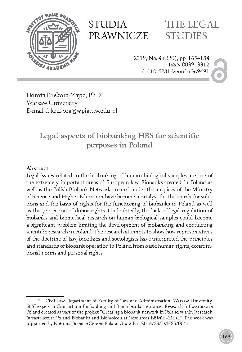 - Krekora-Zając D., O konieczności regulacji prawnej biobanków, ”Państwo i Prawo” 2012, no. 7.