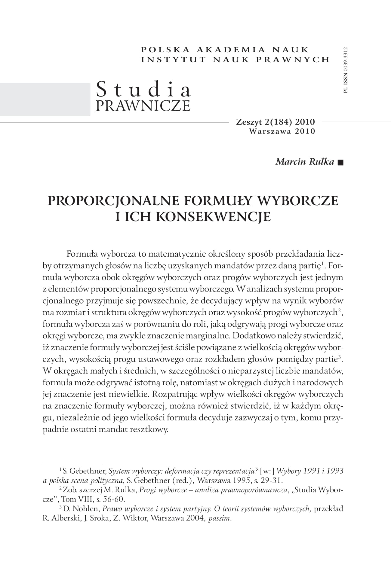 - Rulka M., Progi wyborcze – analiza prawnoporównawcza, „Studia Wyborcze” 2009, nr 8, s. 23–66.