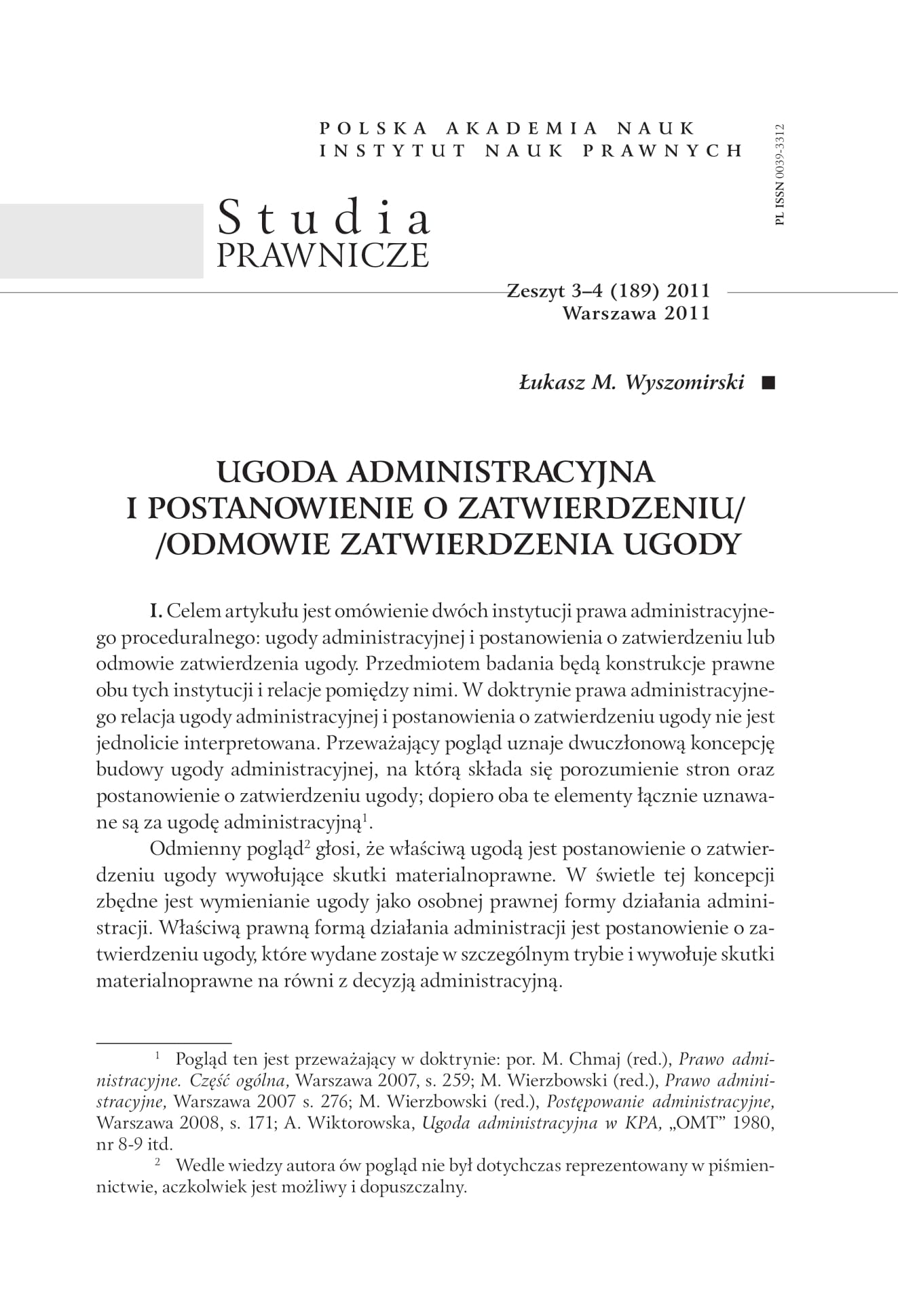 8. Dawidowicz W., Ugoda w postępowaniu administracyjnym „Państwo i Prawo” 1980, nr 3, s. 18–30.