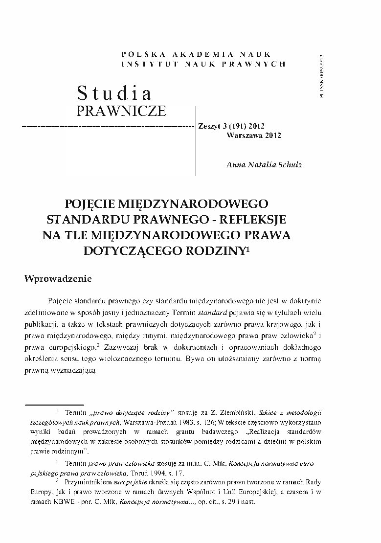 Pojęcie międzynarodowego standardu prawnego - refleksje na tle międzynarodowego prawa dotyczącego rodziny