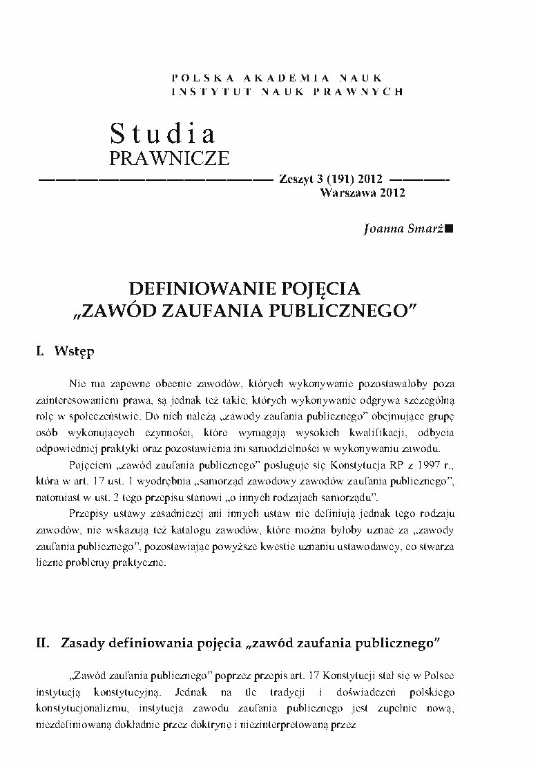 - Tabernacka M., Pojęcie zawodu zaufania publicznego, „Acta Uniwersitatis Wratislaviensis. Przegląd Prawa i Administracji” 2004, nr 62, s. 287–302.