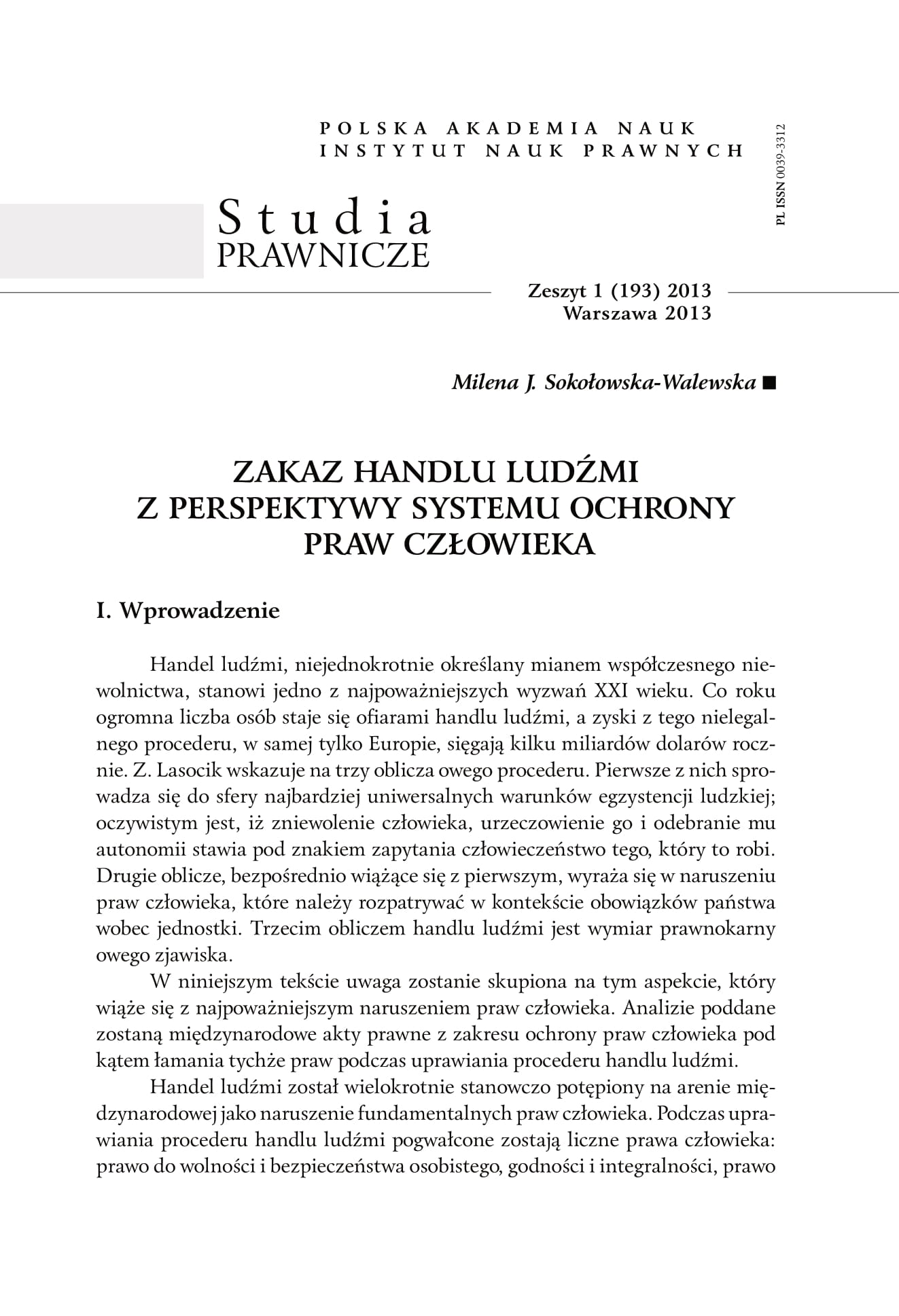W niniejszym tekście uwaga zostanie skupiona na tym aspekcie, który wiąże się z najpoważniejszym naruszeniem praw człowieka. Analizie poddane zostaną międzynarodowe akty prawne z zakresu ochrony praw człowieka pod kątem łamania tychże praw podczas uprawiania procederu handlu ludźmi.