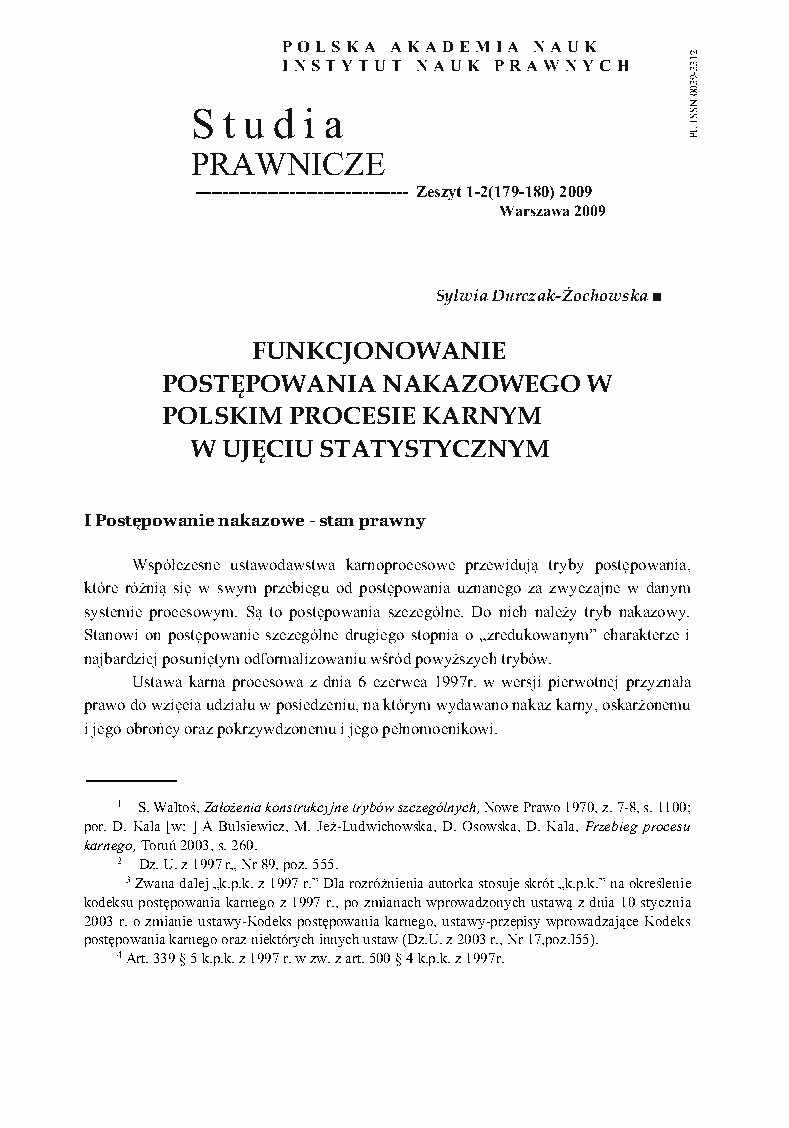 - Gronowska B., Jeż-Ludwichowska M., Noskowicz K., Postępowanie nakazowe w świetle praktyki, „Ruch Prawniczy, Ekonomiczny i Socjologiczny” 1991, nr 1, s. 85–106.