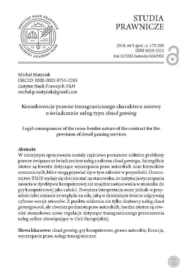 Konsekwencje prawne transgranicznego charakteru umowy o świadczenie usług typu cloud gaming: [Legal consequences of the cross-border nature of the contract for the provision of cloud gaming services]. (2018). Studia Prawnicze The Legal Studies, 5, 173-209. https://doi.org/10.37232/sp.2018.5.6