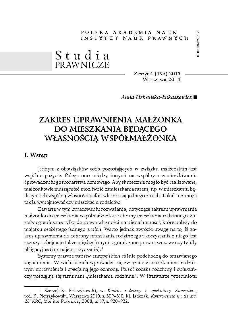 Zakres uprawnienia małżonka do mieszkania będącego własnością współmałżonka: [The scope of the spouse’s rights to the apartment owned by the other spouse]. (2013). Studia Prawnicze The Legal Studies, 4 (196), 95-128. https://doi.org/10.37232/sp.2013.4.8