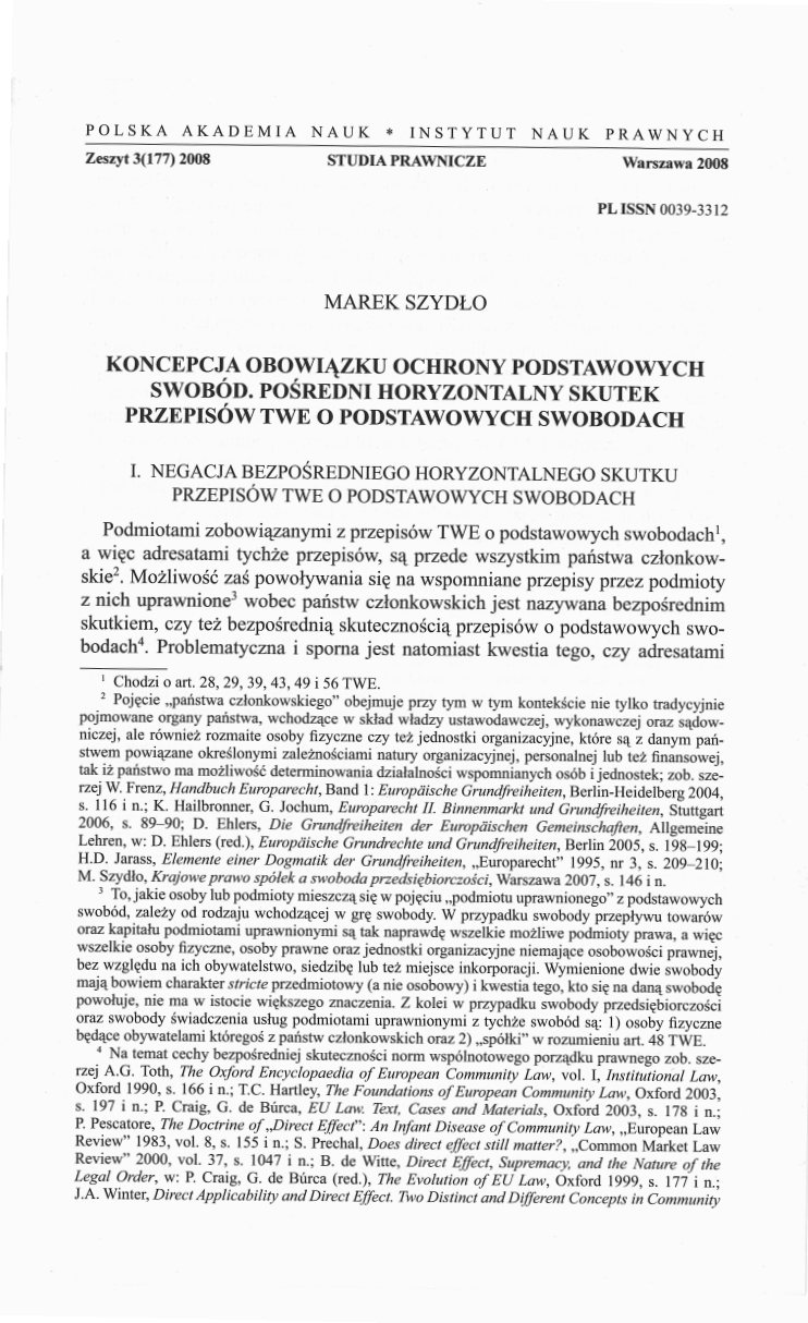- Stachel C., Schutzpflichten der Mitgliedstaaten fur die Grundfreiheiten des EG-Vertrags unter besonderer Berucksichtigung des Grundrechtsschutzes in der Gemeinschaft, Duncker & Humblot, Berlin 2006.