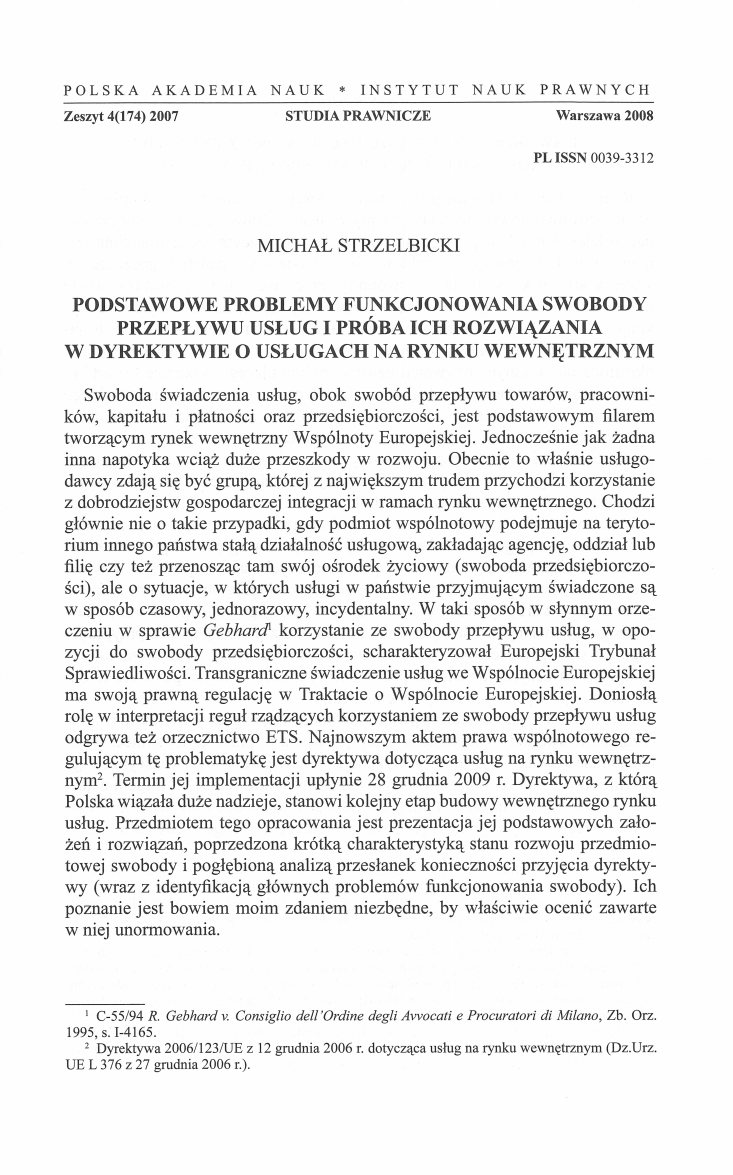 - Strzelbicki M., Swoboda świadczenia usług w Unii Europejskiej, „Ruch Prawniczy, Ekonomiczny i Socjologiczny” 2003, nr 3.