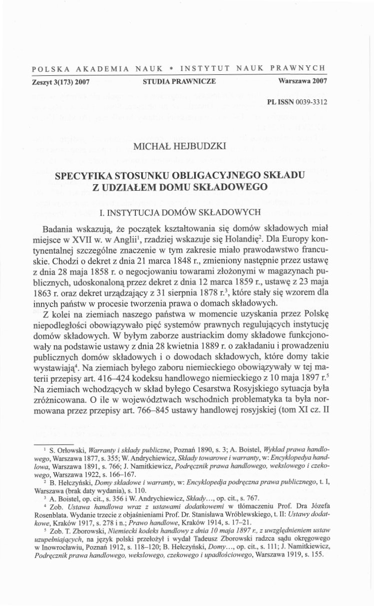 - Petyniak-Sanecki K., Domy składowe i obrót warrantowy, „Przegląd Prawa Handlowego” 1925, nr 3.
