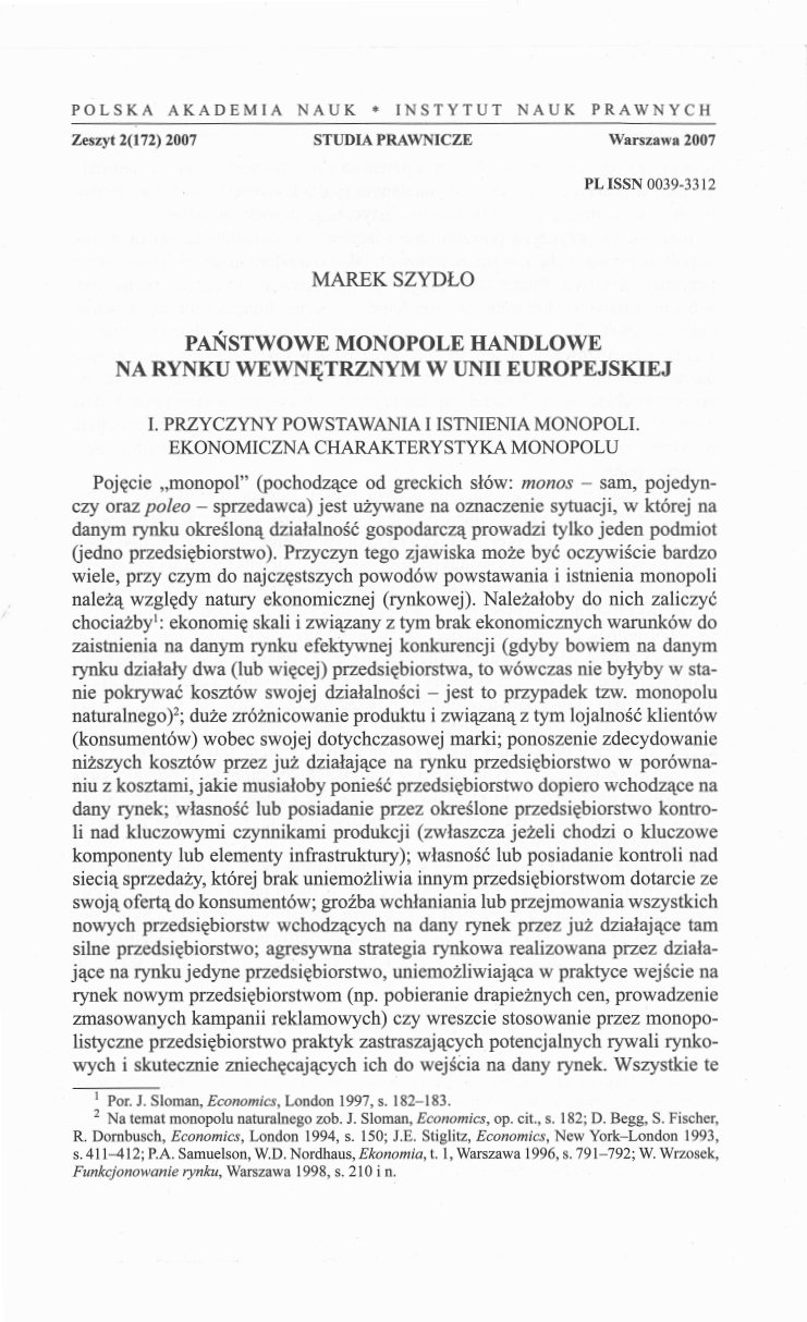 - Skoczny T., Państwowe monopole handlowe w prawie wspólnotowym, „Studia Europejskie” 1997, nr 2.