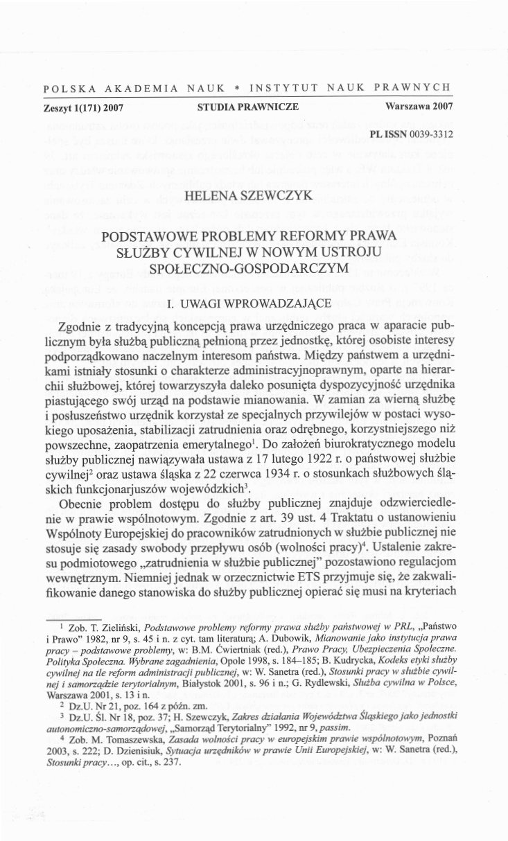 - Zieliński T., Podstawowe problemy reformy prawa służby państwowej w PRL, „Państwo i Prawo” 1982, nr 9, s. 45-57.
