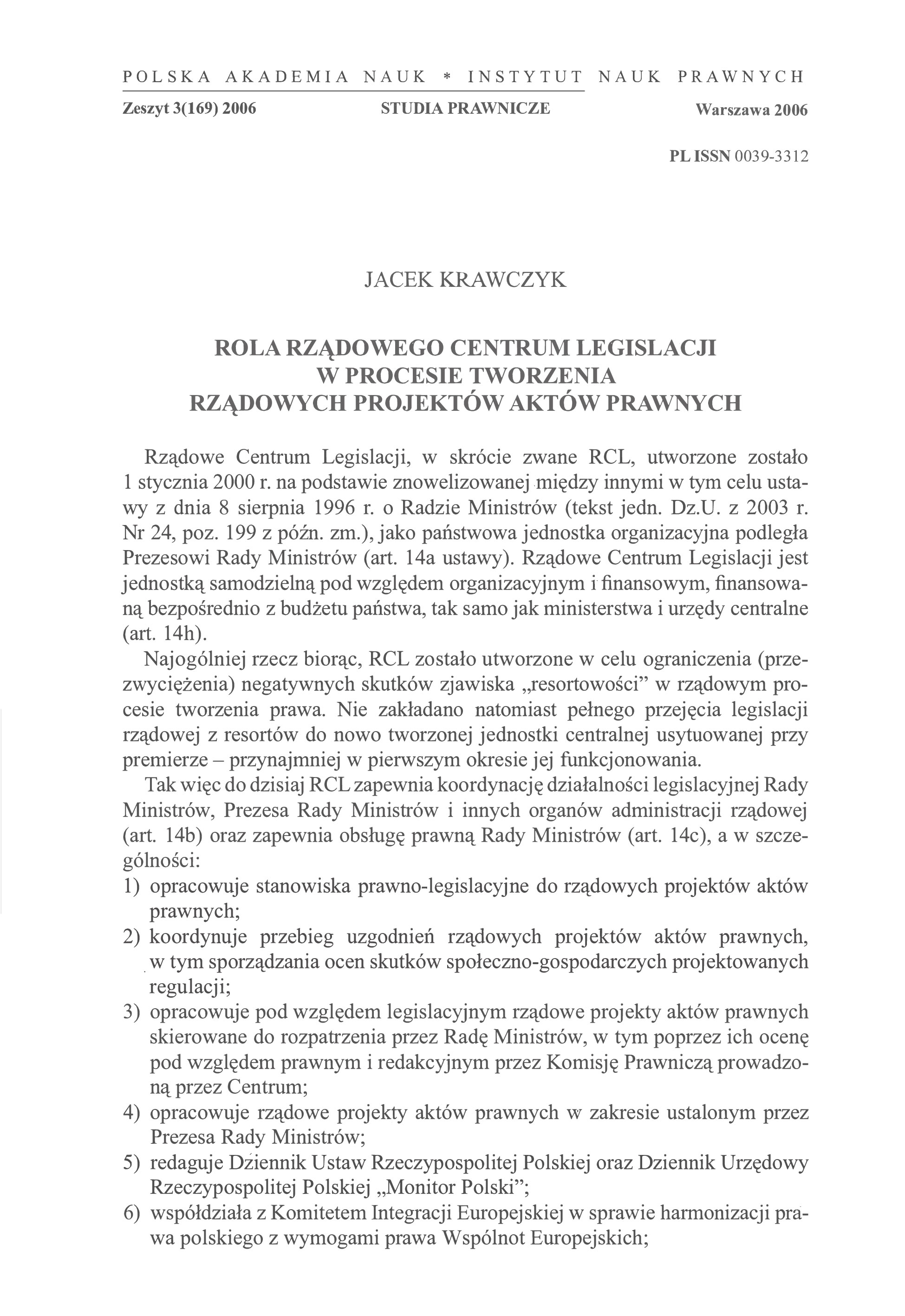 Rola Rządowego Centrum Legislacji w procesie tworzenia rządowych projektów aktów prawnych: [The role of the Government Legislative Centre in the proces of creating governmental drafts of legal acts]. (2006). Studia Prawnicze The Legal Studies, 3 (169), 131-139. https://doi.org/10.37232/sp.2006.3.7