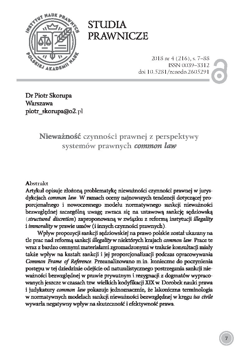 - Skorupa P., Normatywne modele sankcji nieważności bezwzględnej a nieistniejąca czynność prawna, „Studia Prawnicze” 2010, z. 1.
