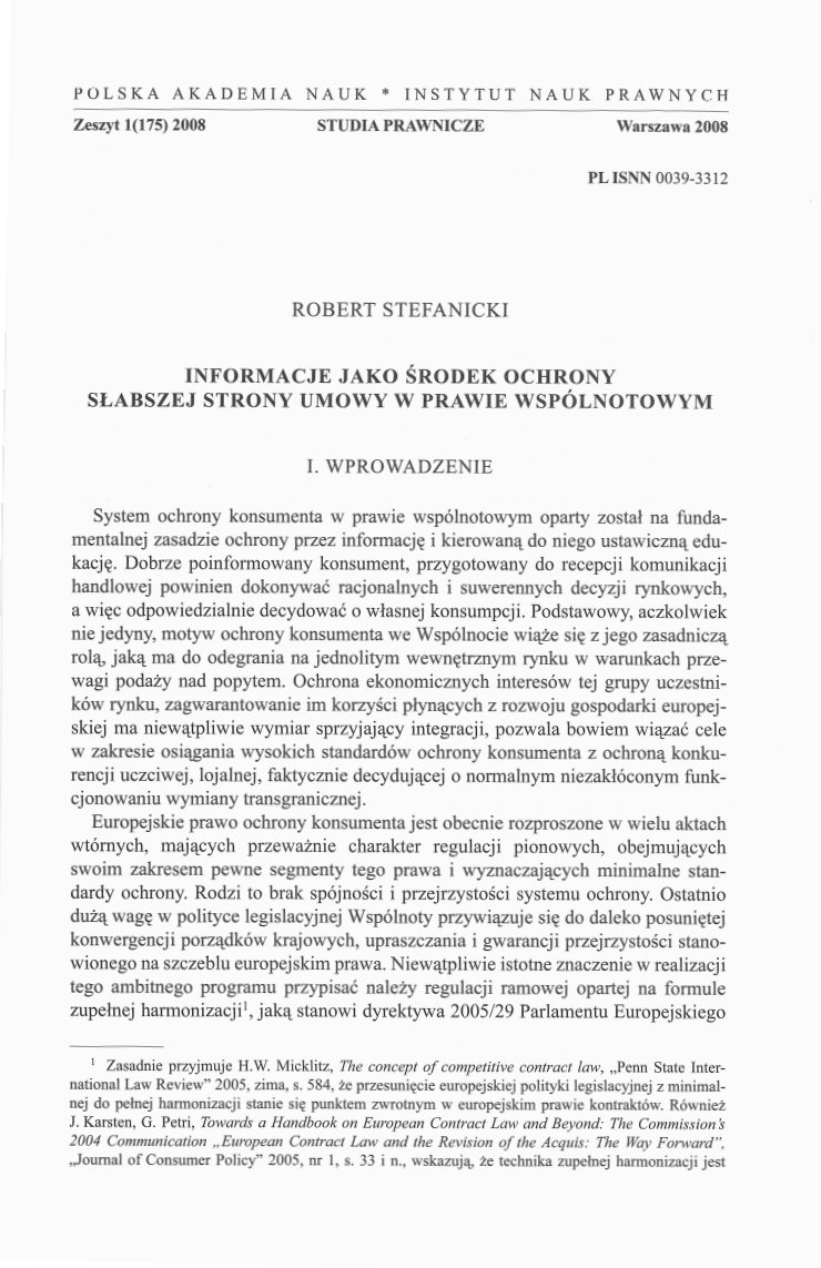 Informacje jako środek ochrony słabszej strony umowy w prawie wspólnotowym: [Information as a way to protect the weaker contracting party in the community law]. (2008). Studia Prawnicze The Legal Studies, 1 (175), 65-84. https://doi.org/10.37232/sp.2008.1.2