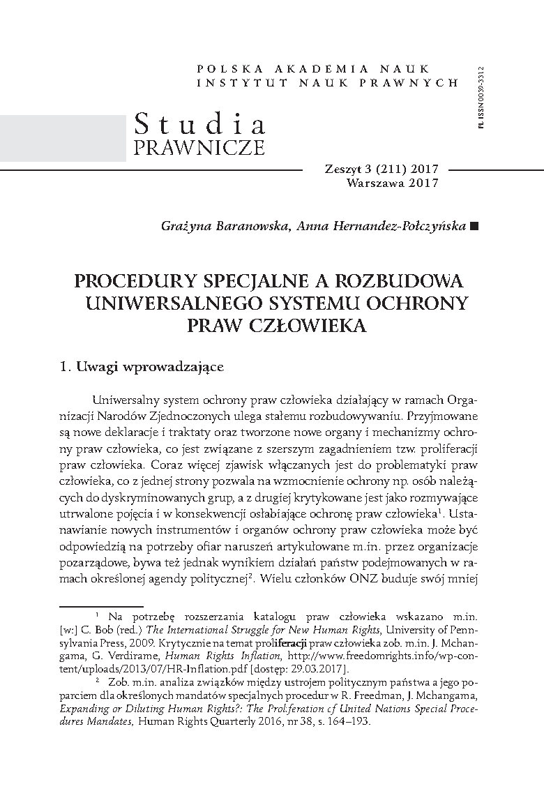 - G. Baranowska, Kształtowanie się międzynarodowych standardów prawnych w zakresie zapobiegania i reagowania na wymuszone zaginięcia, Studia Prawnicze 2016, nr 1 (205).