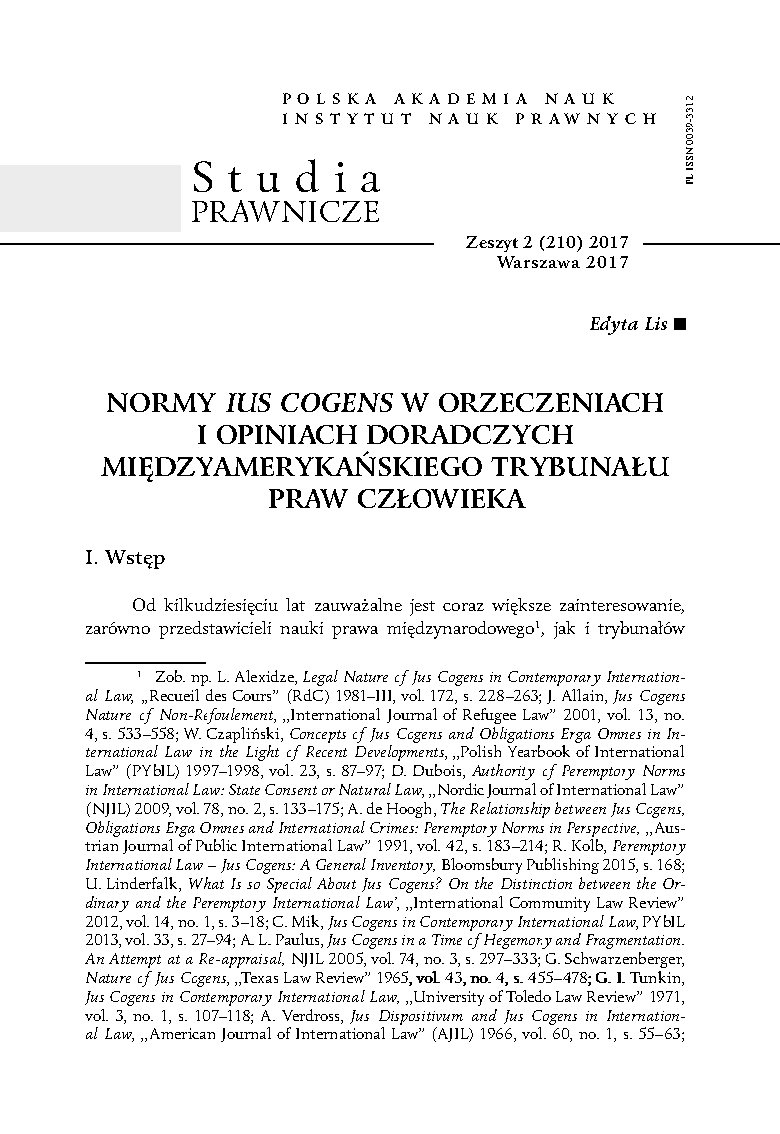Normy ius cogens w orzeczeniach i opiniach doradczych Międzyamerykańskiego Trybunału Praw Człowieka: [Iuc cogens norms in judgements and advisory opinions of the Inter-American Court of Human Rights]. (2017). Studia Prawnicze The Legal Studies, 2 (210), 31-66. https://doi.org/10.37232/sp.2017.2.2