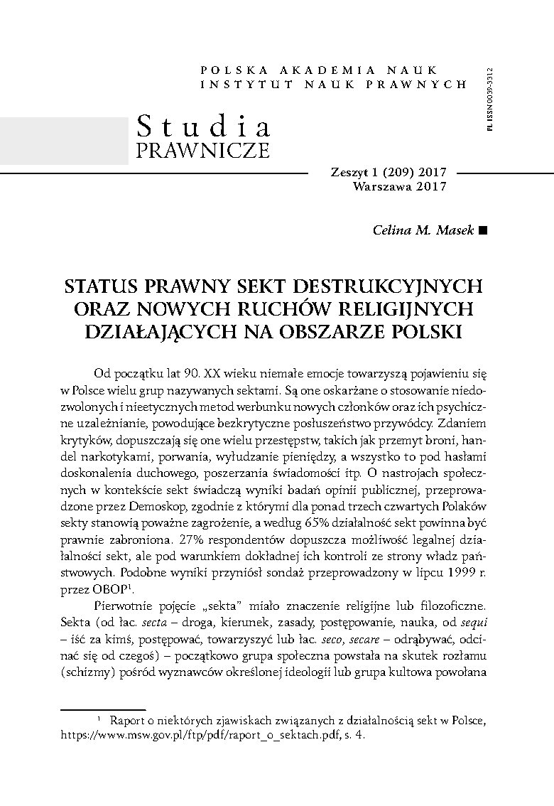 Od początku lat 90. XX wieku niemałe emocje towarzyszą pojawieniu się w Polsce wielu grup nazywanych sektami. Są one oskarżane o stosowanie niedozwolonych i nieetycznych metod werbunku nowych członków oraz ich psychiczne uzależnianie, powodujące bezkrytyczne posłuszeństwo przywódcy. Zdaniem krytyków, dopuszczają się one wielu przestępstw, takich jak przemyt broni, handel narkotykami, porwania, wyłudzanie pieniędzy, a wszystko to pod hasłami doskonalenia duchowego, poszerzania świadomości itp. O nastrojach społecznych w kontekście sekt świadczą wyniki badań opinii publicznej, przeprowadzone przez Demoskop, zgodnie z którymi dla ponad trzech czwartych Polaków sekty stanowią poważne zagrożenie, a według 65% działalność sekt powinna być prawnie zabroniona. 27% respondentów dopuszcza możliwość legalnej działalności sekt, ale pod warunkiem dokładnej ich kontroli ze strony władz pań-stwowych. Podobne wyniki przyniósł sondaż przeprowadzony w lipcu 1999 r. przez OBOP.