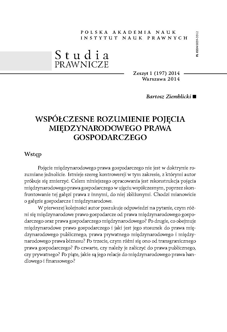 Pojęcie międzynarodowego prawa gospodarczego nie jest w doktrynie rozumiane jednolicie. Istnieje szereg kontrowersji w tym zakresie, z którymi autor próbuje się zmierzyć. Celem niniejszego opracowania jest rekonstrukcja pojęcia międzynarodowego prawa gospodarczego w ujęciu współczesnym, poprzez skonfrontowanie tej gałęzi prawa z innymi, do niej zbliżonymi. Chodzi mianowicie o gałęzie gospodarcze i międzynarodowe.