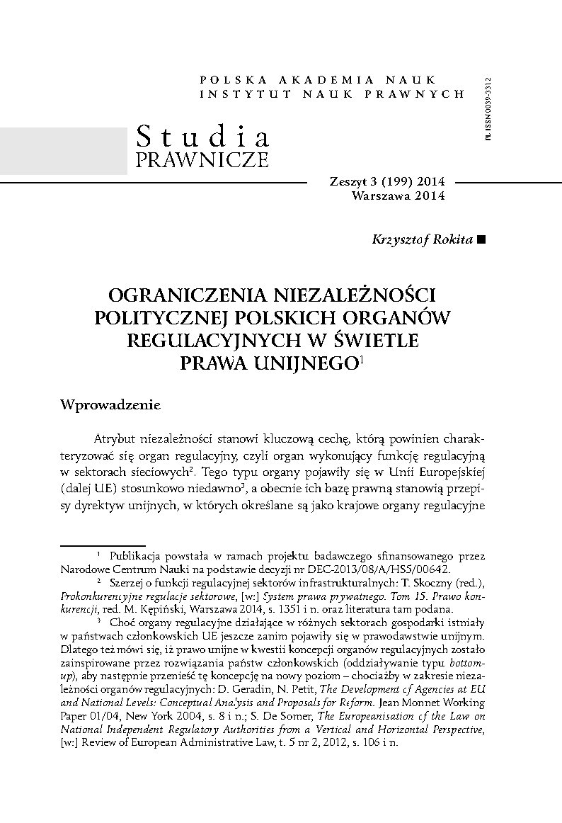 Ograniczenia niezależności politycznej polskich organów regulacyjnych w świetle prawa unijnego: [Limitations of the political independence of polish regulatory authorities in light of the EU law]. (2014). Studia Prawnicze The Legal Studies, 3 (199), 53-84. https://doi.org/10.37232/sp.2014.3.3
