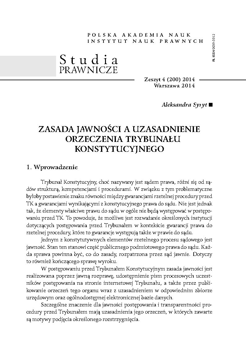 The Constitutional Tribunal is called a “court of law”. The proceedings before that body of law must meet the requirements of a fair procedure. Guarantee of a fair trial is its openness and transparency. Openness and transparency is implemented for example by public hearing or through the publication of decisions of this body in the appropriate set of official.