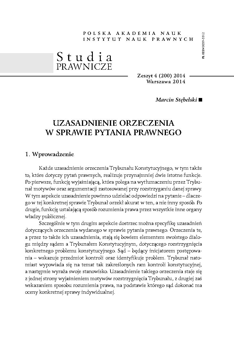 Uzasadnienie orzeczenia w sprawie pytania prawnego: [Justification of a judgement resolving a legal question]. (2014). Studia Prawnicze The Legal Studies, 4 (200), 99-116. https://doi.org/10.37232/sp.2014.4.7
