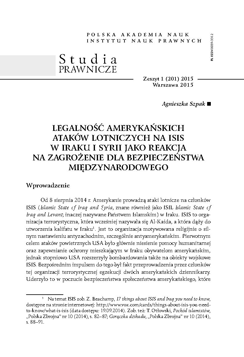 Legalność amerykańskich ataków lotniczych na ISIS w Iraku i Syrii jako reakcja na zagrożenie dla bezpieczeństwa międzynarodowego: [Legalityof u.s. air strikes against ISIS in Iraq and Syria as a reaction to a threat to international security]. (2015). Studia Prawnicze The Legal Studies, 1 (201), 35-56. https://doi.org/10.37232/sp.2015.1.2