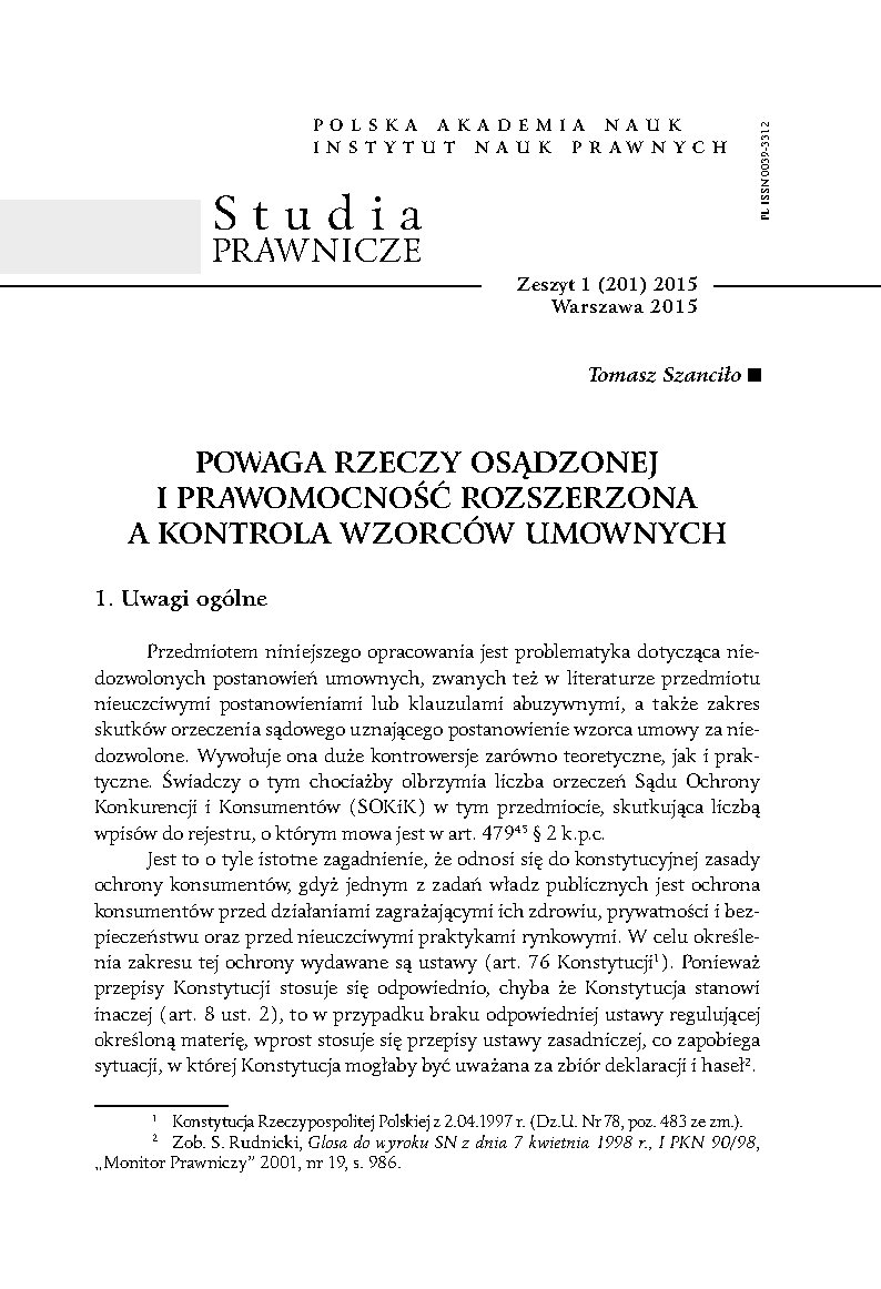 - Kaliński M., Winczorek P., W sprawie zakresu skutków uznania postanowienia wzorca umownego za niedozwolone i jego zgodności z konstytucją, „Przegląd Sądowy” 2013, nr 9.
