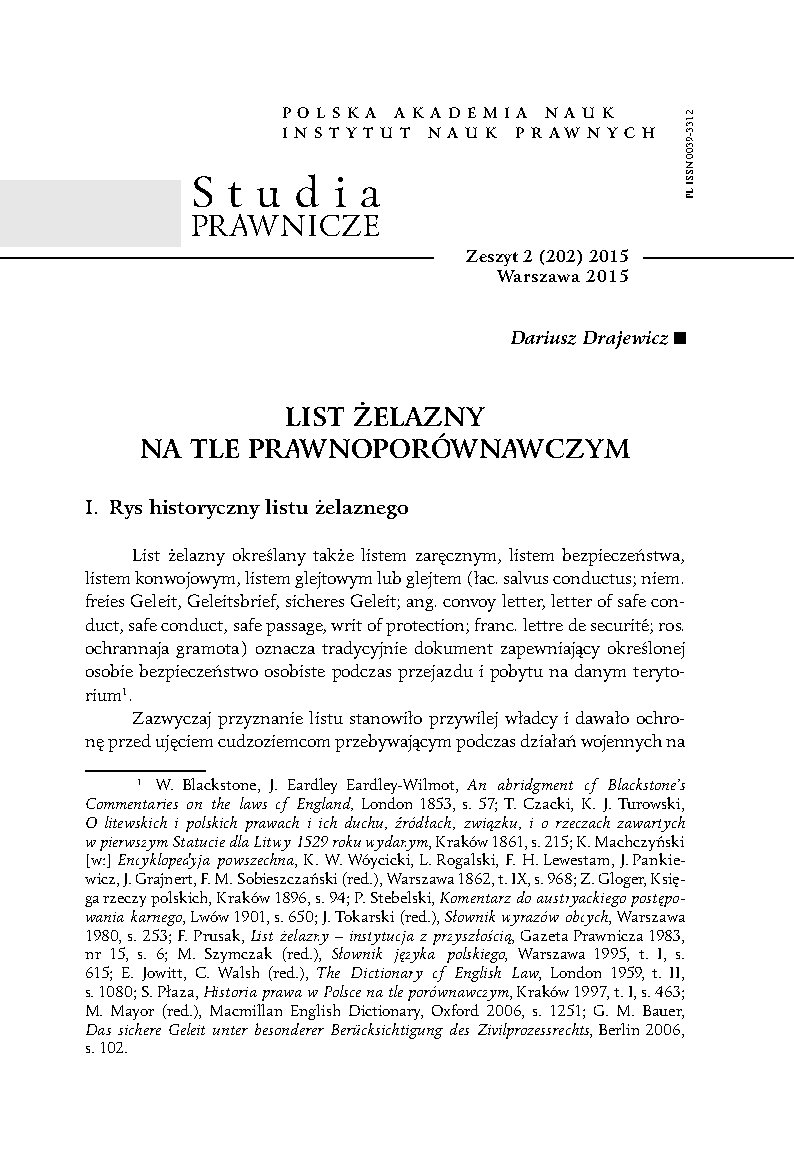 - Drajewicz D., List żelazny w ustawodawstwach państw niemieckojęzycznych, „Prokuratura i Prawo” 2014, nr. 2.