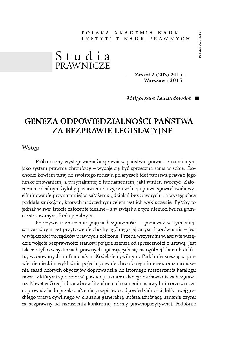 - Safjan M., Odpowiedzialność odszkodowawcza z tytułu bezprawia normatywnego, RPEiS 2005, Nr 1.