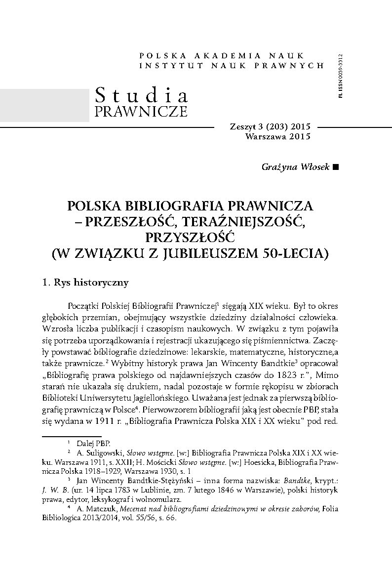 Polska Bibliografia Prawnicza – przeszłość, teraźniejszość, przyszłość (w związku z jubileuszem 50-lecia): [Polish of law bibliography. the past, the present and the future (on the occasion of the 50th anniversary)]. (2015). Studia Prawnicze The Legal Studies, 3 (203), 155-160. https://doi.org/10.37232/sp.2015.3.5