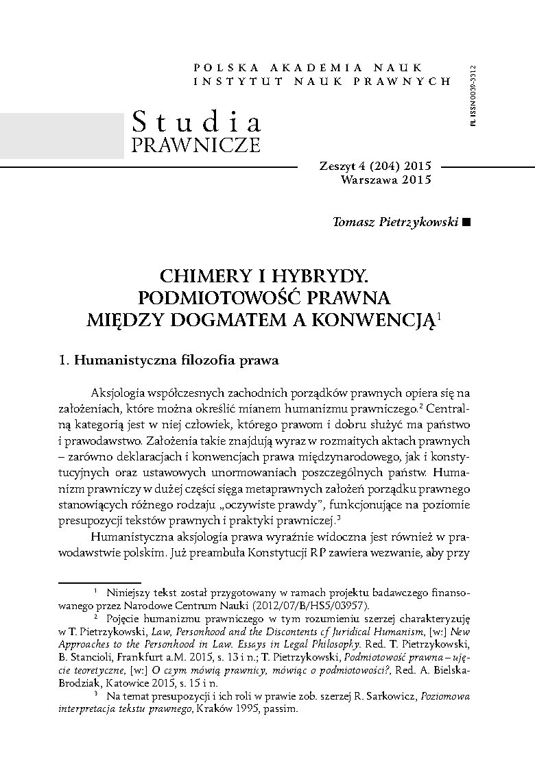 - Pietrzykowski T., Law, Personhood and the Discontents of Juridical Humanism [w:] T. Pietrzykowski, B. Stancioli (red.), New Approaches to the Personhood in Law. Essays in Legal Philosophy, Frankfurt a.M. 2015.