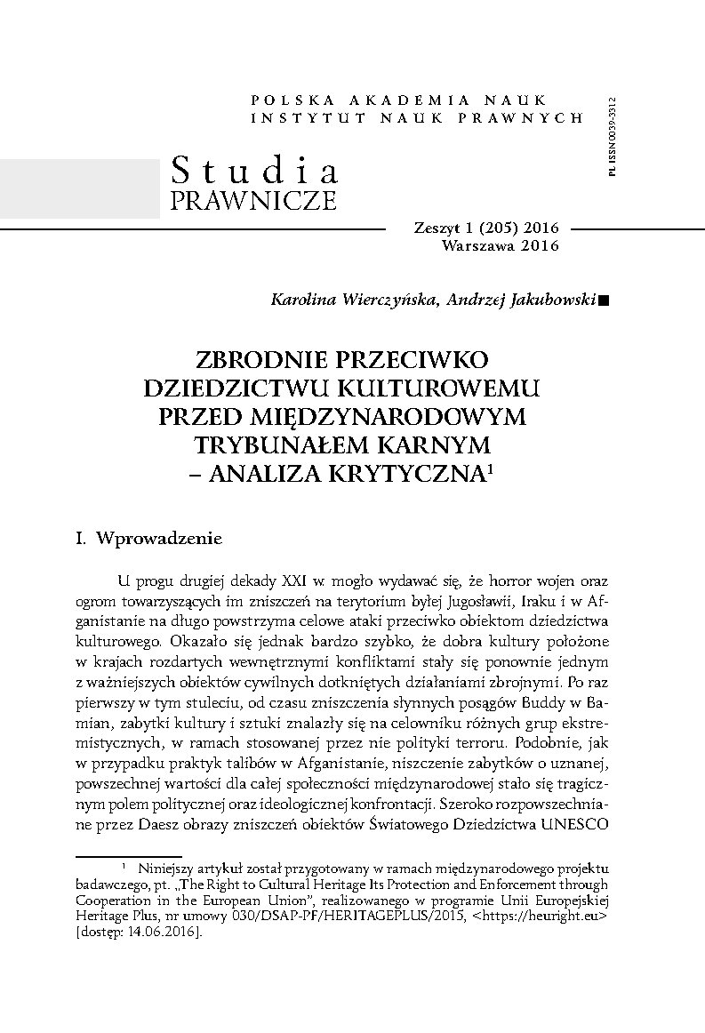 - Lenzerini F., The Role of International and Mixed Criminal Courts in the Enforcement of International Norms Concerning the Protection of Cultural Heritage [w:] F. Francioni, J. Gordley (red.), Enforcing International Cultural Heritage Law, Oxford 2013 r.